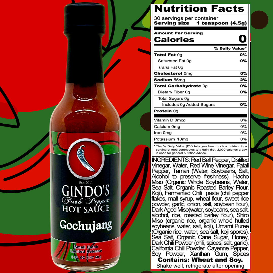 Experience deep umami heat with Gindo’s Gochujang Hot Sauce — a rich, savory blend inspired by Korean tradition. Crafted with red bell pepper, fatalii pepper, miso, tamari, and fermented chili paste, this sauce delivers layers of sweet, smoky spice and a slow-building warmth. Perfect for adding bold, mouthwatering flavor to grilled meats, rice bowls, noodles, or roasted vegetables, it’s a fermented fusion of heat and depth that elevates everyday meals into gourmet creations.