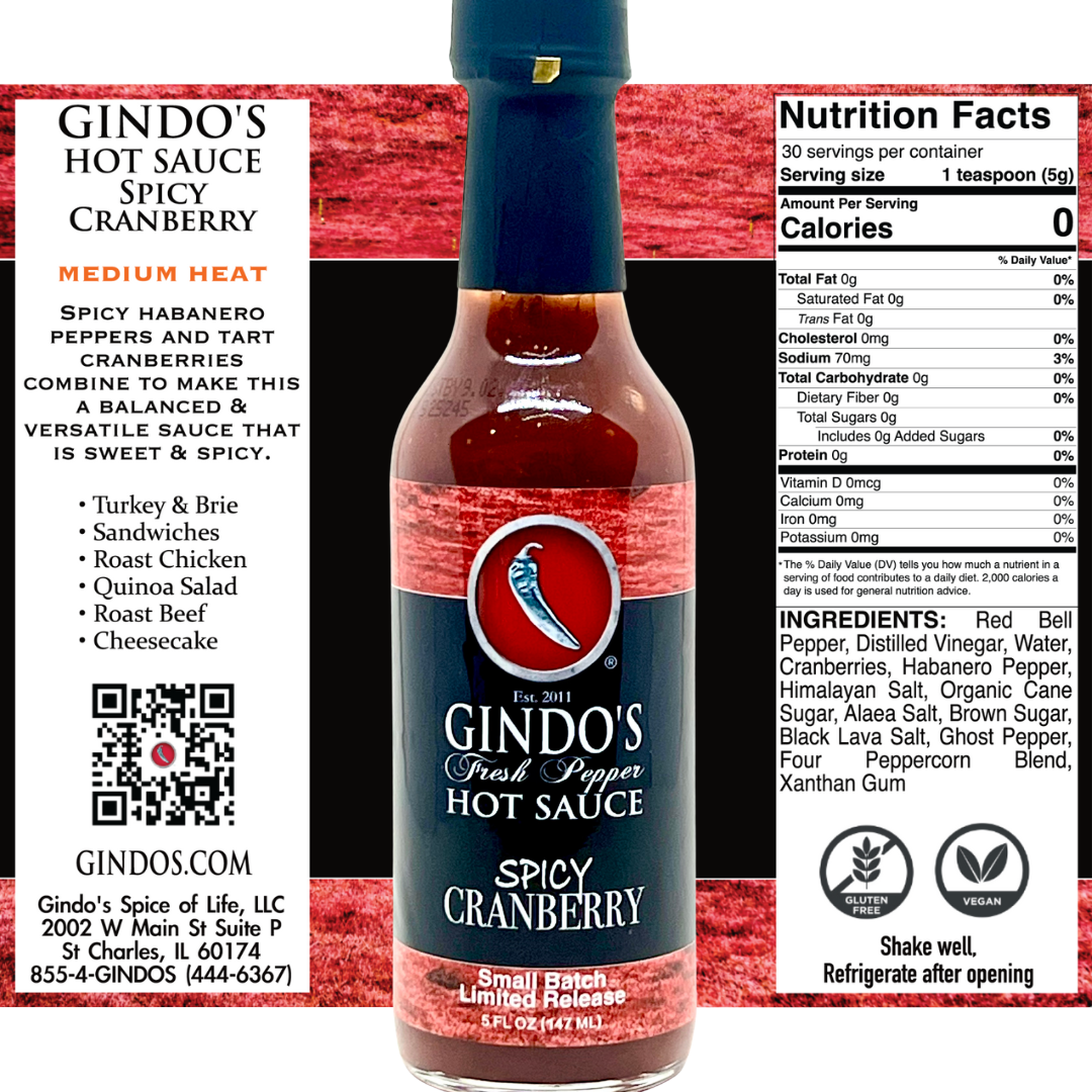 Gindo’s Spicy Cranberry Hot Sauce is the ultimate balance of sweet, tart, and spicy. Bursting with juicy cranberries and fresh chili peppers, this vibrant hot sauce delivers bold flavor with a refreshing twist. The natural tartness of cranberry pairs perfectly with pepper heat, making it an instant favorite for holiday feasts and beyond. Try it with turkey, ham, roasted vegetables, cheese boards, or even as a glaze for chicken and pork. Handcrafted in small batches, this seasonal hot sauce is as versatile as it is unforgettable.